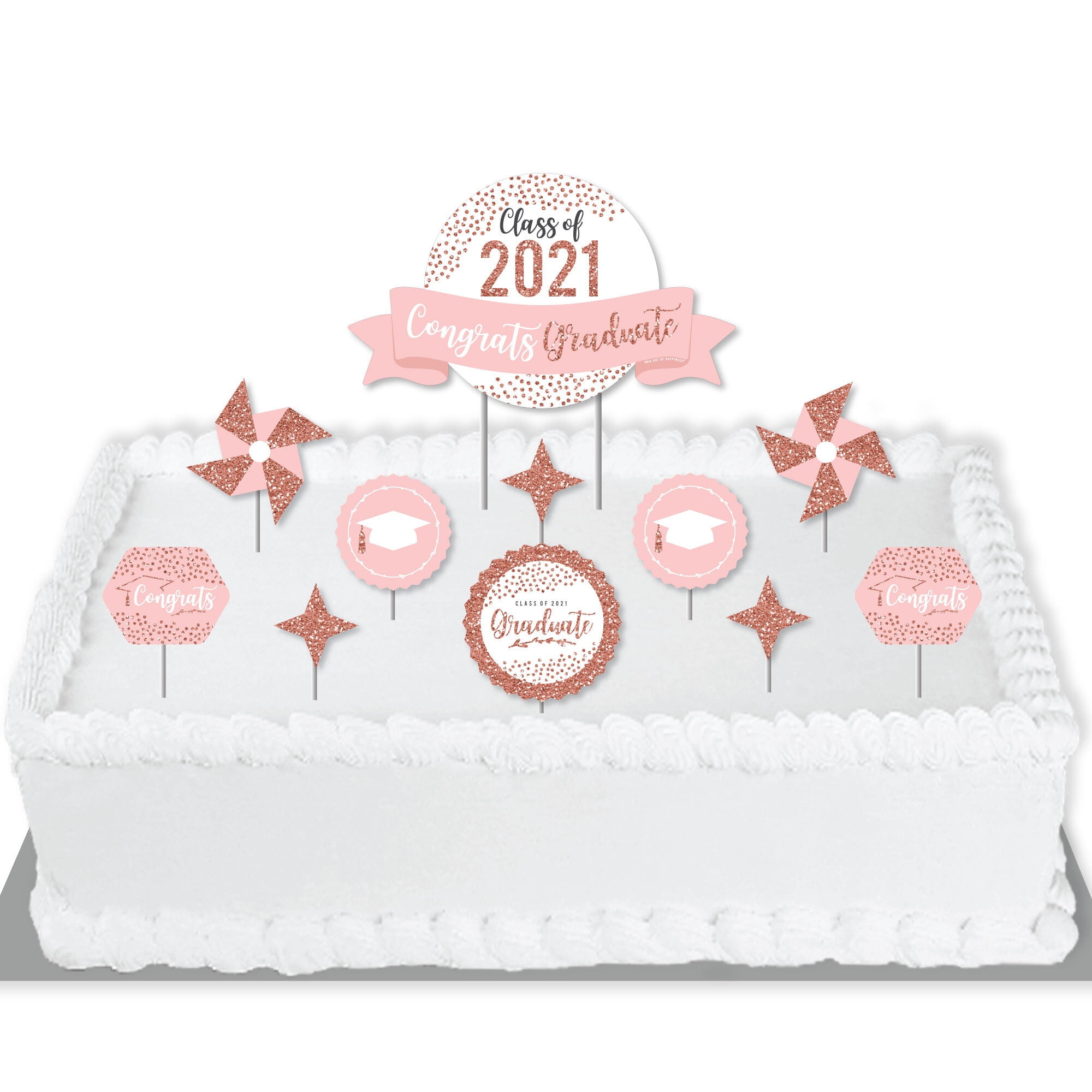 Big Dot Of Happiness Rose Gold Grad 2021 Graduation Party Cake Decorating Kit Congrats Graduate Cake Topper Set 11 Pieces Walmart Com Walmart Com